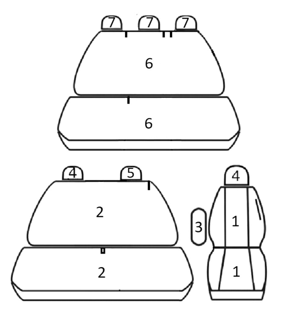 Pokrowce są szyte na miarę i pasują tylko do powyższego rozkładu siedzeń.