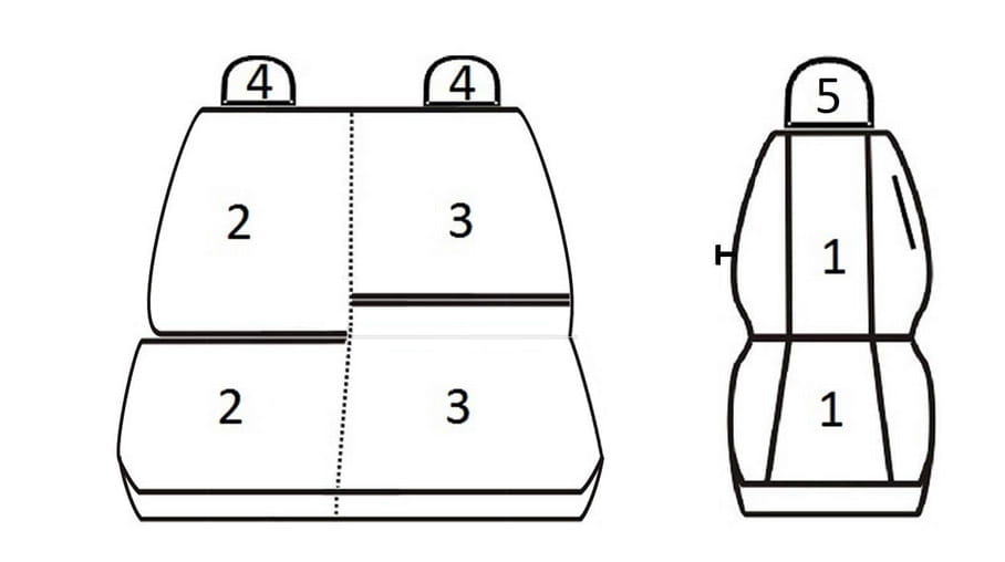 Pokrowce są szyte na miarę i pasują tylko do powyższego rozkładu siedzeń.